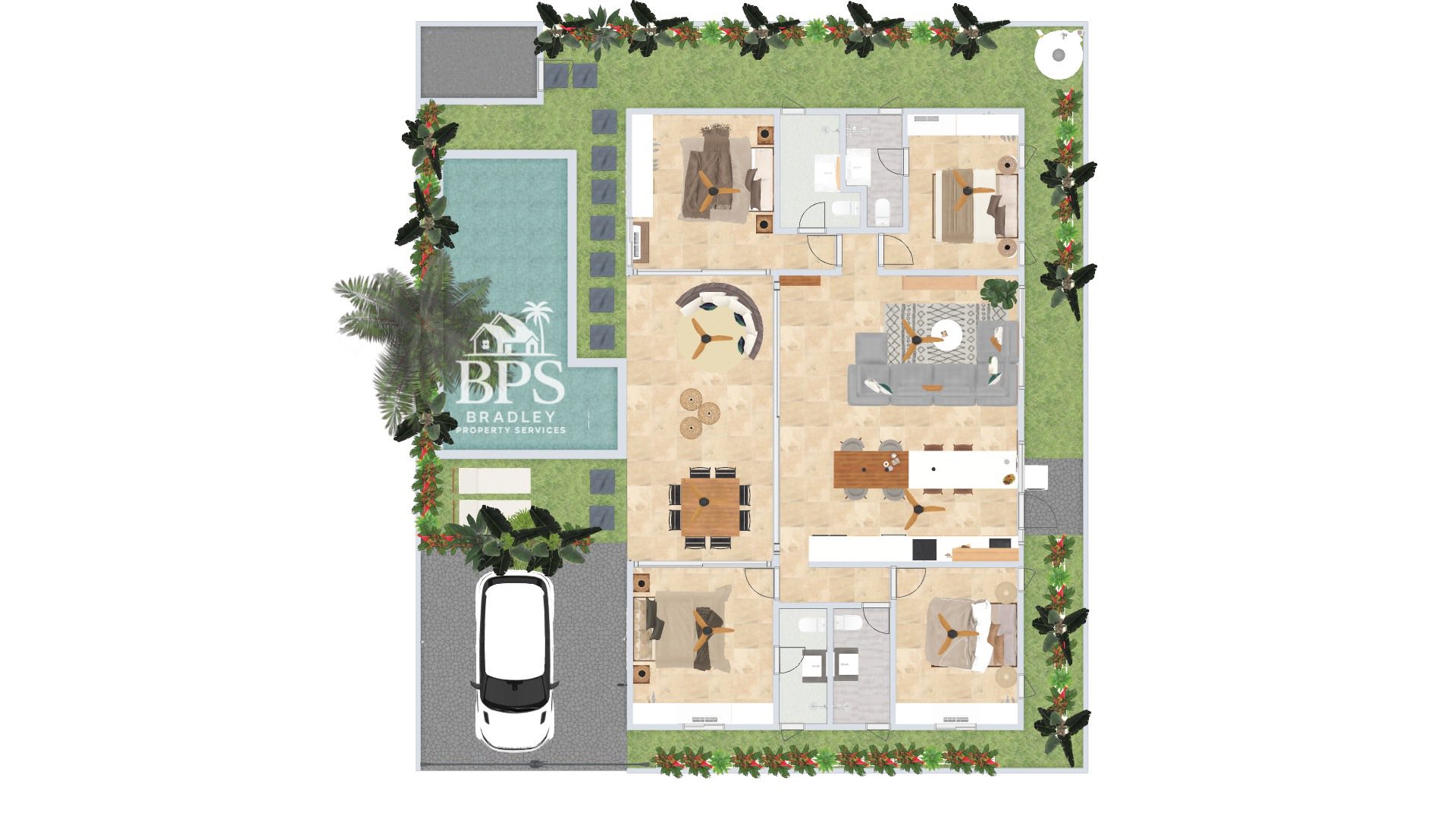 Sold fully furnished, decorated, and landscaped
