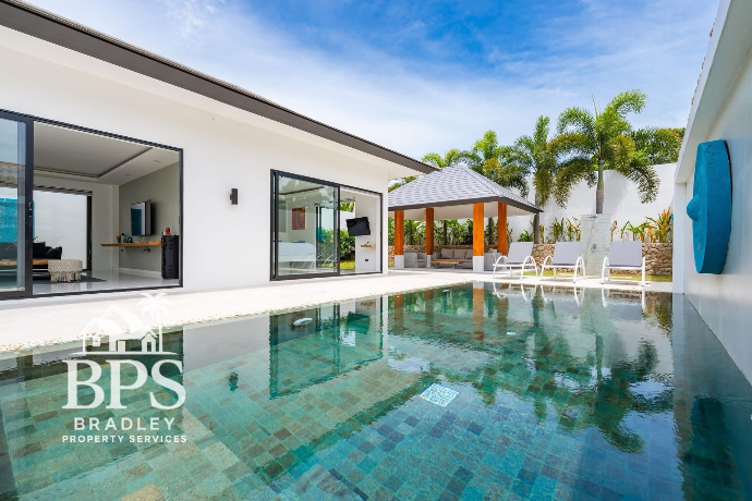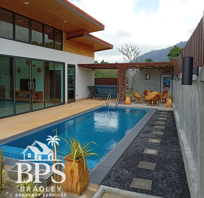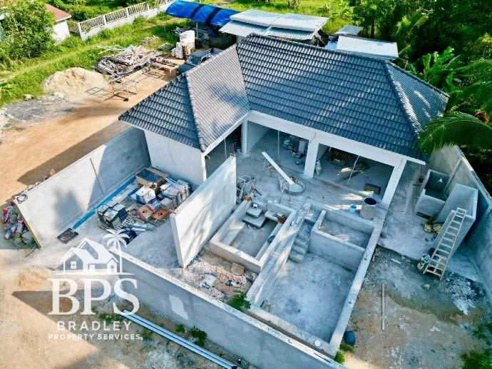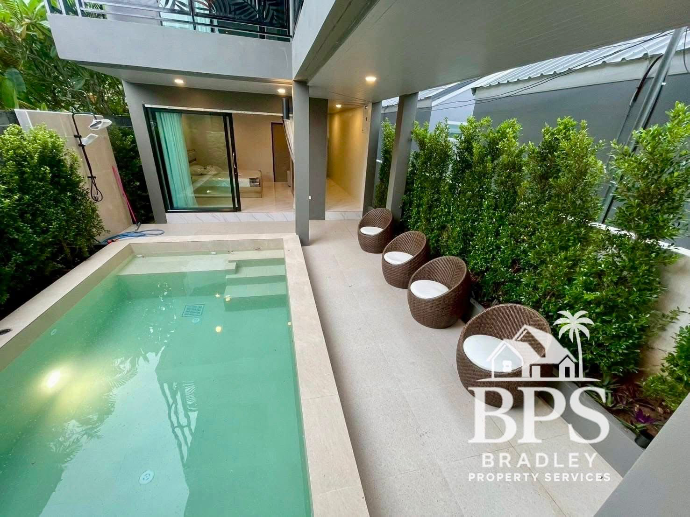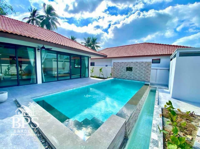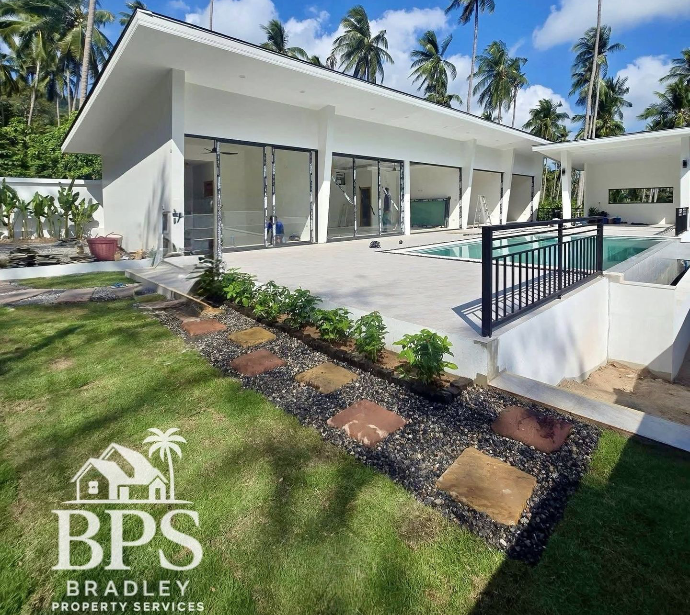 Fully enclosed 3-bedroom pool villa, with large open plan kitchen , living and dining area.Peaceful surroundings with access via concrete road, Maenam Soi 1.